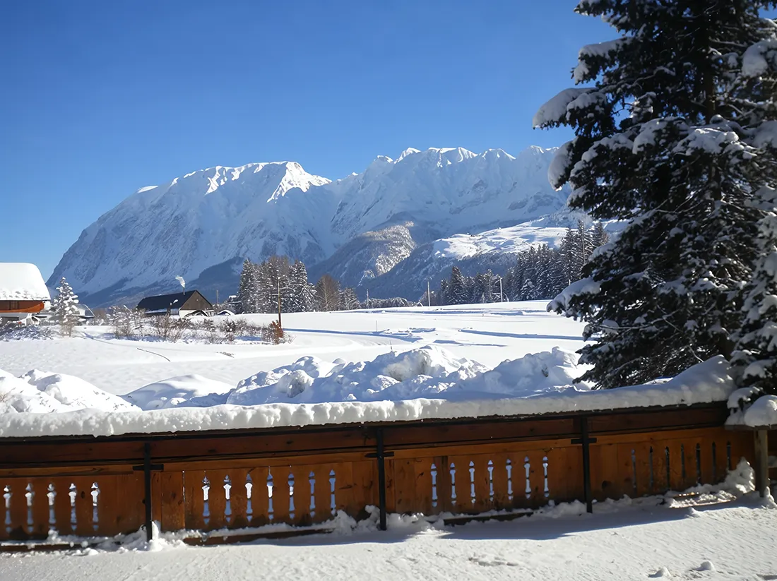 Bad Mitterndorf liegt zwischen Dachstein und Grimming und bietet eine ruhige, weitläufige Naturkulisse. Der Ort ist bekannt für seine Thermen, klaren Bergluft und ideale Lage für Wandern, Skifahren und Langlauf.