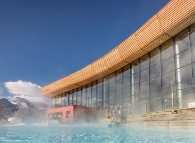 Hoch oben in den Bergen des Grimming-Massivs entspringt unser Wasser, um dann aus einer 2.413 Meter tiefen Bohrung in unsere Thermenbecken zu sprudeln. Becken, ein Saunadorf mit Bar und der große Relaxbereich sind wahre Wellnessoasen.